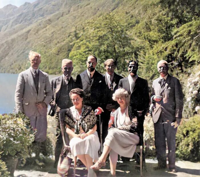 後方 左から フォスター・ベイリー、ベッツァーニ博士、ロベルト・アサジオリ博士、ケトナー博士、ケスカル博士、グーシンズ博士。
